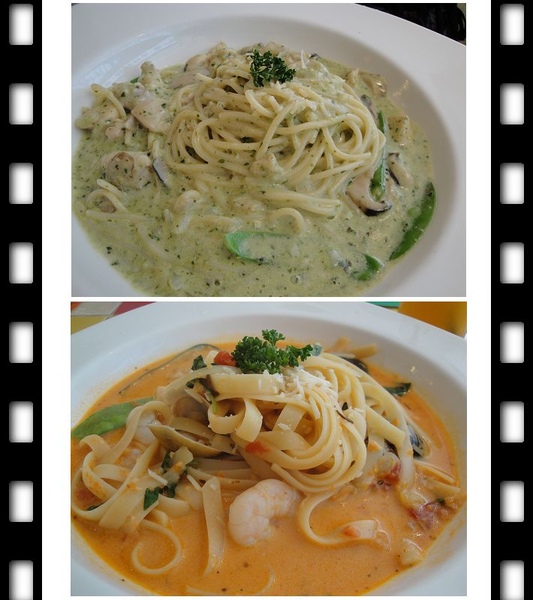 萱點了奶油青醬雞肉麵(細麵),青醬不膩,蠻清爽的,不過雞肉沒有很好吃;